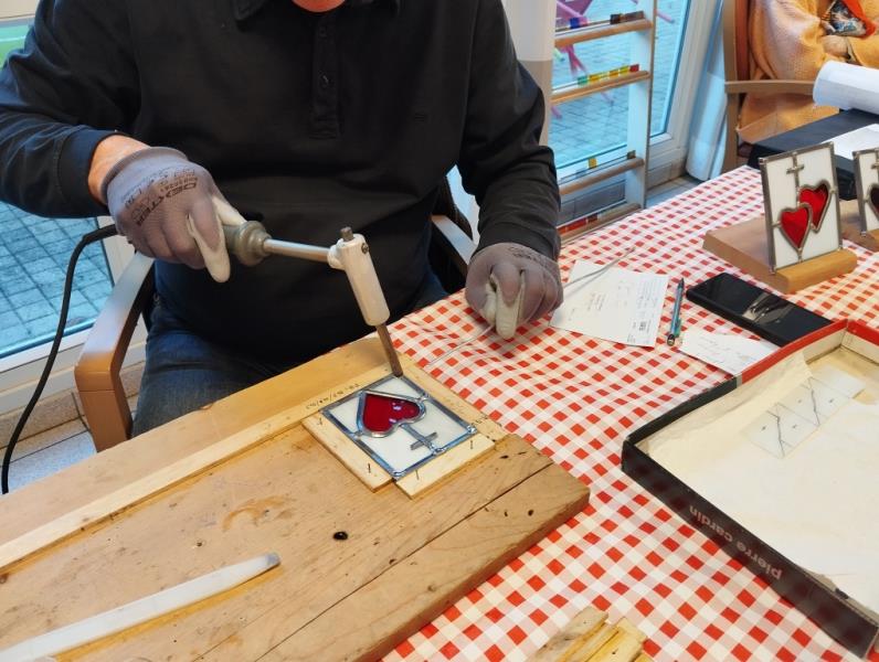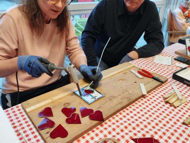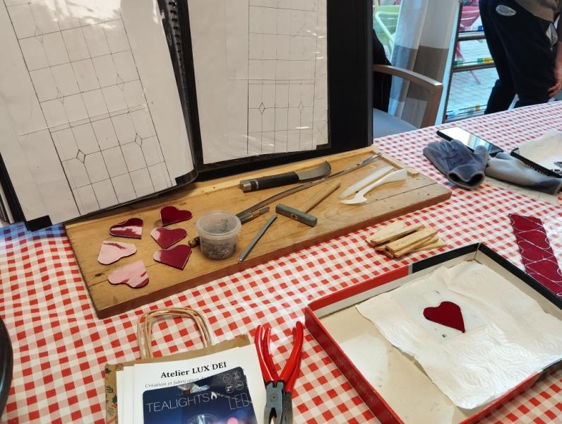 Mercredi dernier, madame F. la fille de l'une de nos résidentes, est venue nous faire partager une passion : le travail sur vitrail.