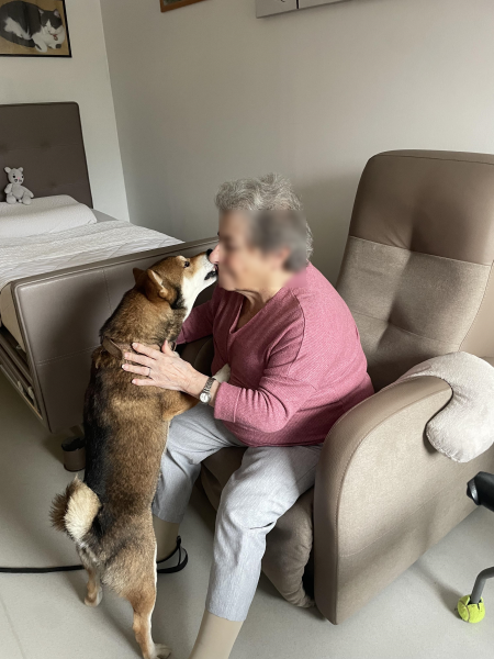 Le 24 décembre dernier, Tango (le chien de notre kinésithérapeute) est venu se faire câliner à la résidence.