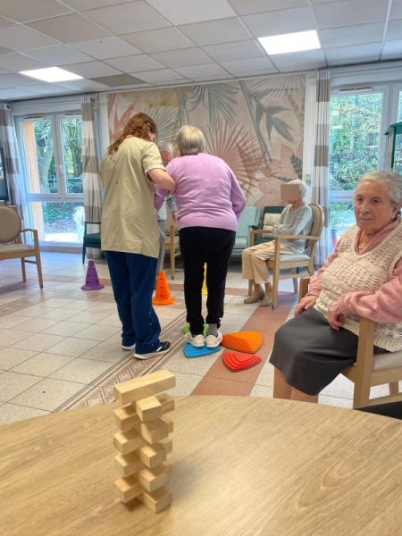 Margaux, notre ergothérapeute, fait participer nos résidents à un atelier équilibre,toutes les semaines. Il est très apprécié de nos résidents.