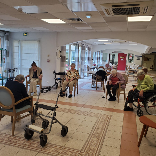 Aujourd'hui, notre kinésithérapeute est absente et la séance de gymnastique annulée de ce fait....