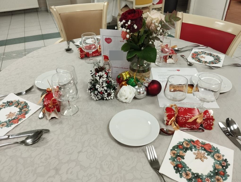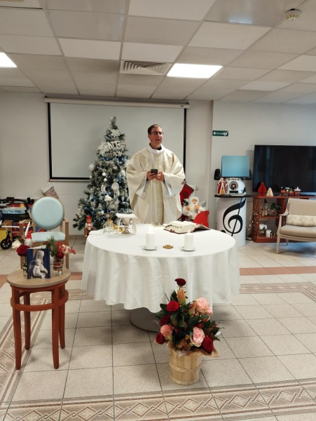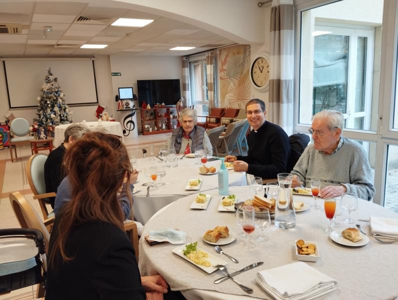 Le 24 décembre dernier, nous avons déjeuné en présence du père Alexandre/ Il a célébré la messe de Noël à 14h30 puis nous avons poursuivi l'après midi avec la danse de Noël et la préparation des tables pour le réveillon.