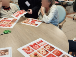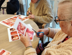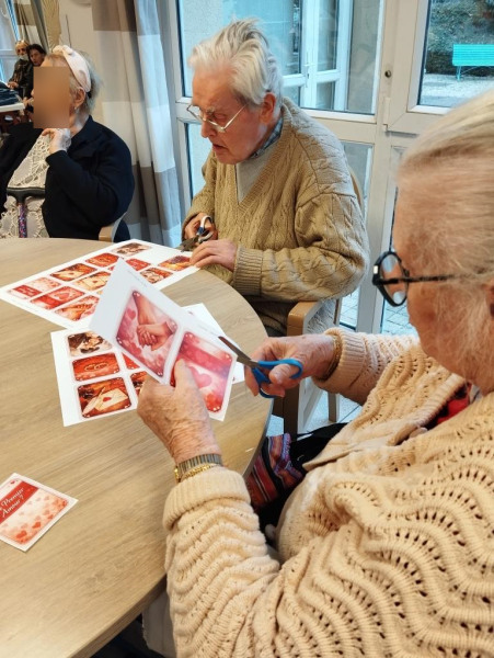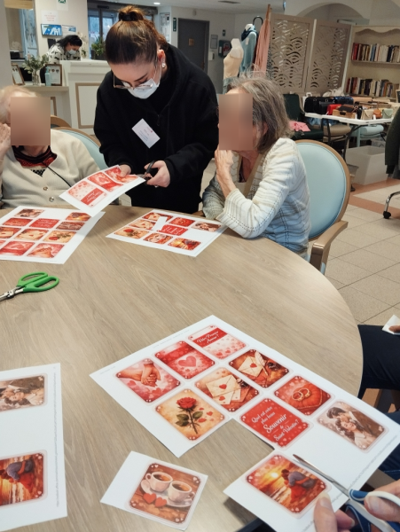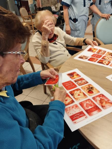 Nos résidents confectionnent un jeux MEMORY sur le thème de la Saint Valentin !