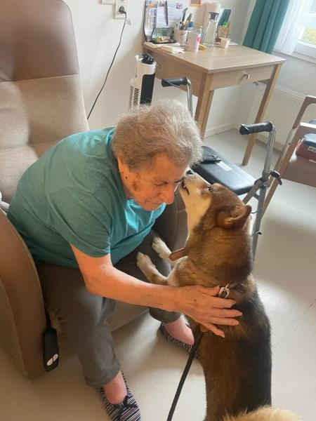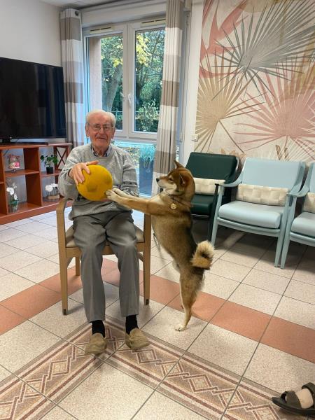 La Fontaine Médicis Concordia > Actualités > moments de tendresse... moments de tendresse... Publiée le 07/11/2025 Paco (le chien d'Amandine notre kinésithérapeute) est aux petits soins avec nos résidents. Des moments de tendresse et de bonheur partagés.