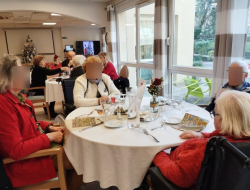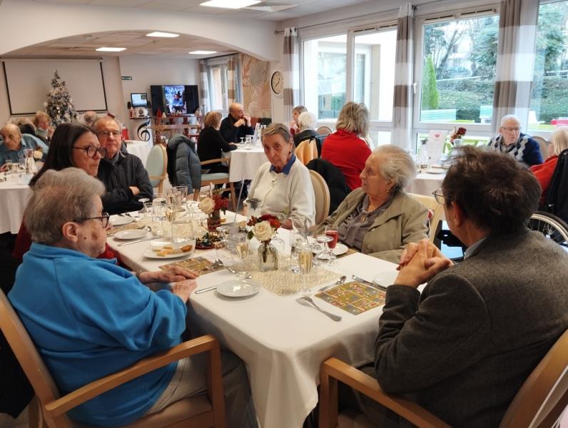 Déjeuner de Noël en présence des résidents et de leurs familles.