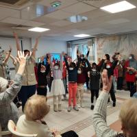 Publiée le 22/12/2025Un grand merci aux élèves de l'école primaire des Brouets de Mantes la Ville qui ont préparé des chants de Noël pour les résidents. A notre tour et avec l'aide de notre équipe de rééducation, nous leur avons présenté la danse de Noël (présentée aux [...] Lire la suite