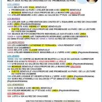 Publiée le 23/10/2019Lundi 14/ Concours de belote Mardi 15/ Exposition de voitures anciennes et promenade avec l'association des vieux volants d'Ile de France Mercredi 16/ Spectacle et Goûter sur le thème Western à Mantes la Jolie Jeudi 17/ Thé dansant avec Alain Héron accordéoniste Fin de&nbs [...] Lire la suite