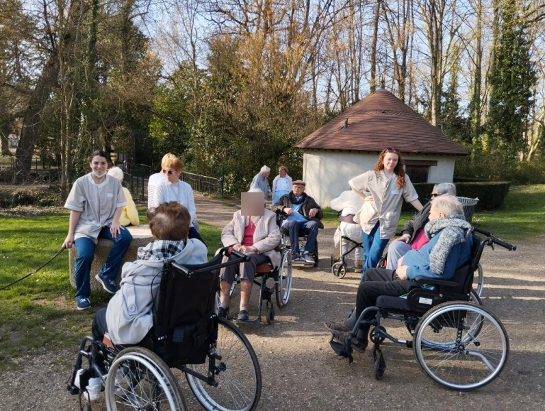 Nous avons fait une promenade de 1h30 en compagnie de l'équipe de rééducation et de Maryvonne bénévole de la résidence.