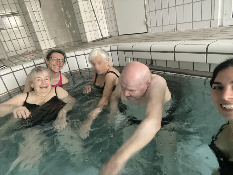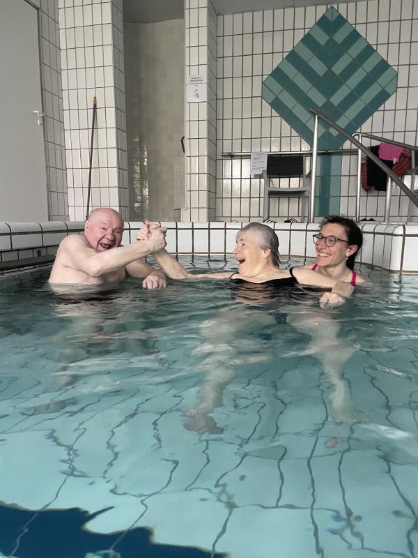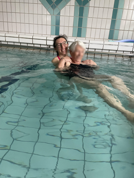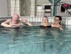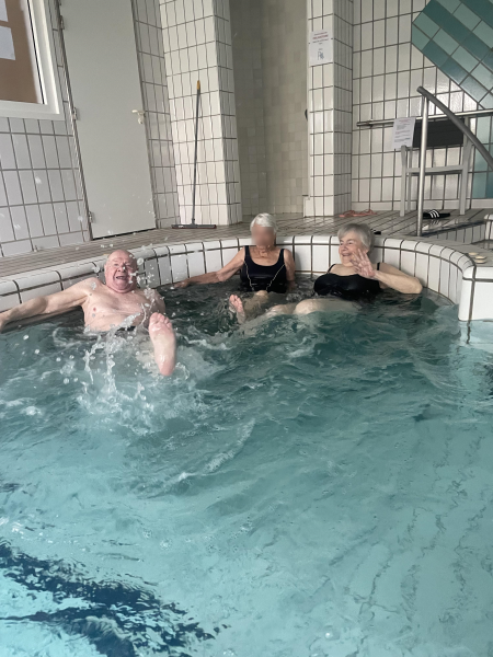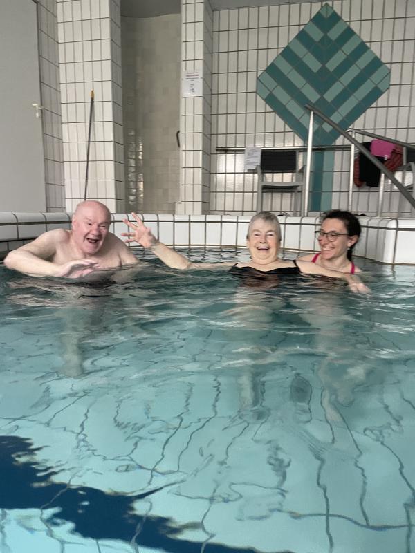 Trois de nos résidents sont partis en balnéothérapie à la piscine de Poissy. Ils se sont réellement amusés dans l'eau comme le témoigne les photos. Paroles des résidents présents: "Je me sens léger.", "Je peux sauter.", "Ca fait du bien!".