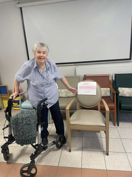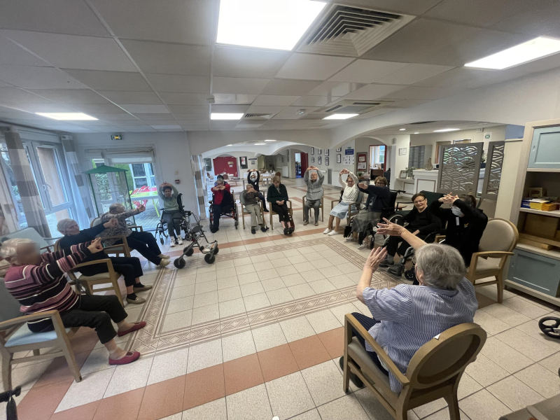 Une fois par semaine un résident est nommé "CHEF" pour animer une partie du cours de gymnastique. L'objectif est de mettre le résident au coeur du soin, qu'il soit acteur de sa santé.