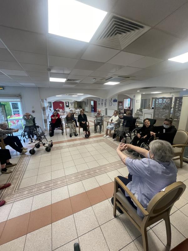 La gym douce continue quatre fois par semaine à 11h. Les résidents sont toujours motivés, ils sont minimum dix à y participer.
