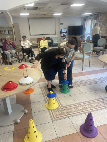 Tous les mardis et vendredis des parcours d'équilibre sont mis en place par l'équipe de rééducation.