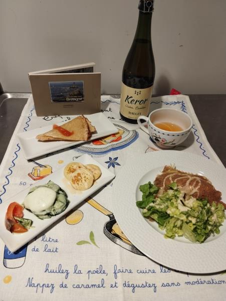 Mercredi 11 Mars, nos résidents avaient choisi un déjeuner sur le thème de la Bretagne... Qui dit Bretagne, dit crêpes et galettes ! un vrai régal pour les papilles, sans oublier la bolée de cidre.