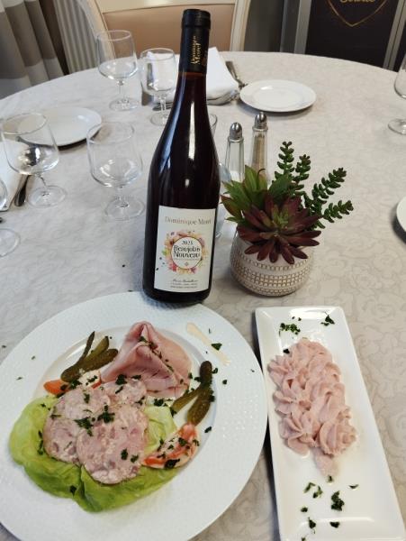 Le chef a préparé une belle assiette de charcuterie (en texture normale et mixée à droite de la photo) pour accompagner le breuvage !