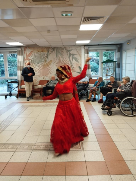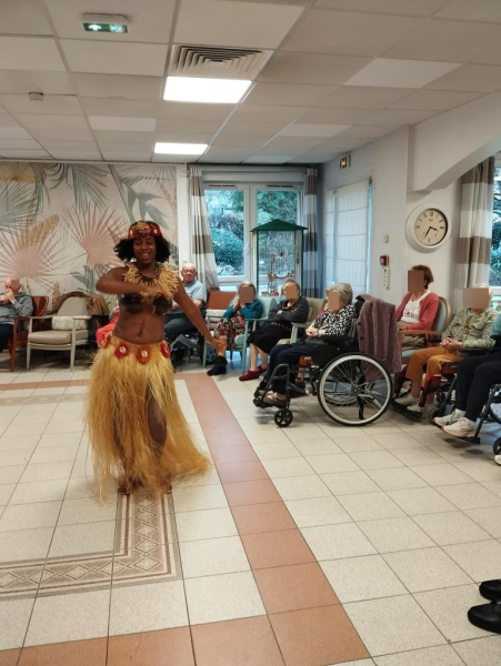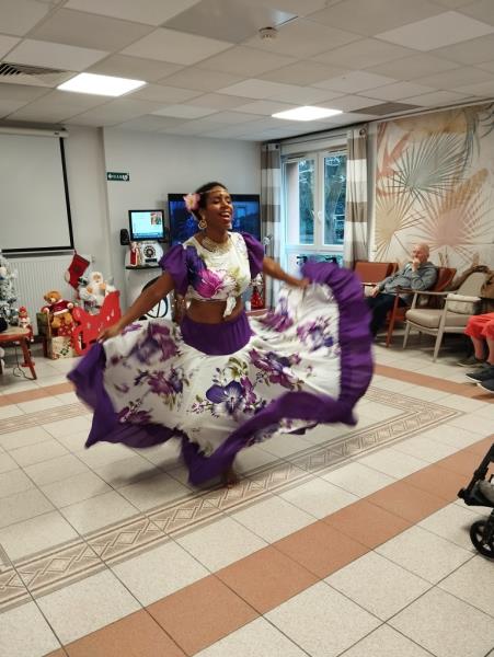 La Fontaine Médicis Concordia > Actualités > Spectacle de Noël Spectacle de Noël Publiée le 23/12/2025 Le 22 décembre dernier, nos résidents ont découvert des danses des 5 continents avec Kameeta. Un spectacle apprécié de tous!