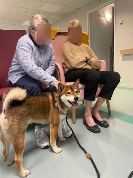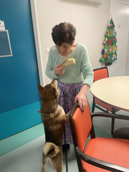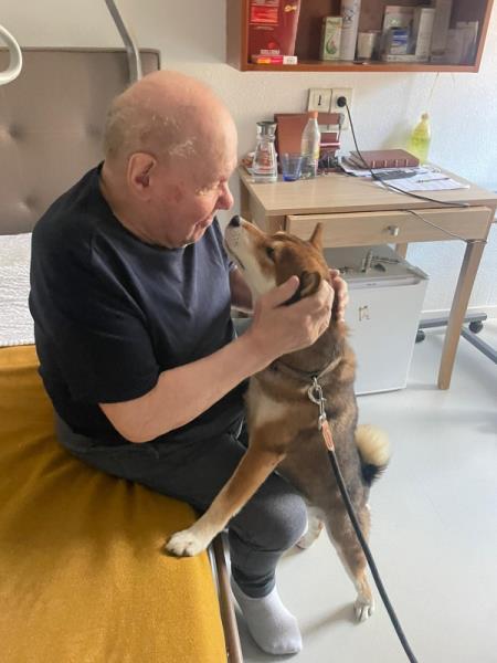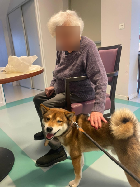 Une nouvelle fois Tango est venu à la résidence se faire câliner par les résidents, il prend de plus en plus ses aises avec les résidents de l'unité protégée !